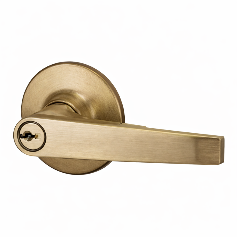 Chapa Kwikset Belleview con Manija para Entrada Principal Dorado Antiguo